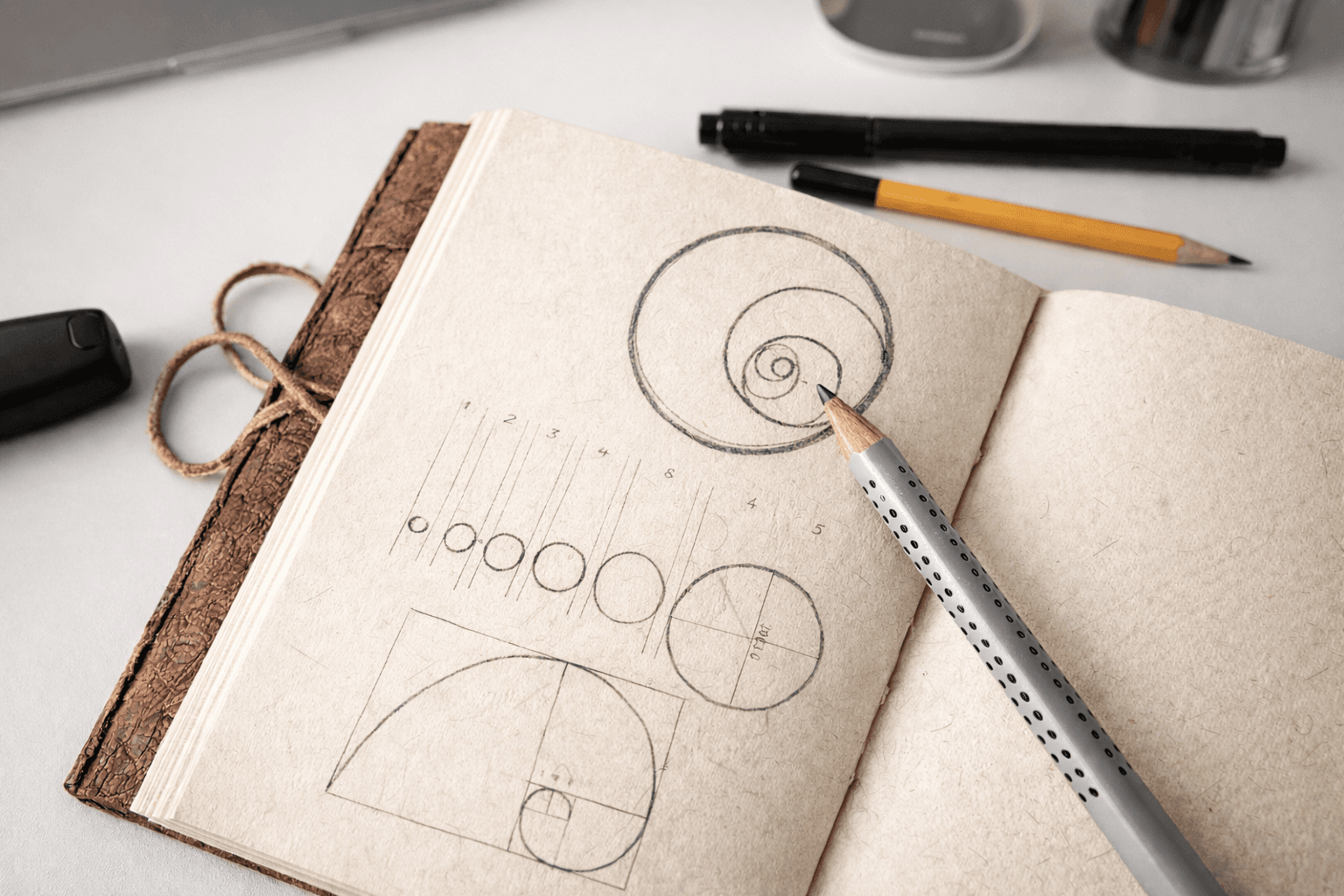 I developed a logo concept rooted in one of nature’s most fundamental principles — the Fibonacci sequence. Using proportional circles derived from the sequence, I created a graphic mark that simultaneously evokes a tree trunk cross-section and the fluid, organic quality of clay. The color palette — forest green and warm earth brown — reinforces the company’s commitment to sustainability and material honesty, translating its core values into a distinctive visual identity. The branding was later extended into a website that carries the same natural, structured design language into the digital space.